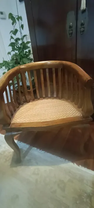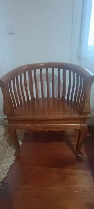 Precioso sillón de estilo colonial, una pieza única para tu hogar. Se entrega en mano en Santander, es súper lindoy está perfecto, madera y hecho A mano, pieza de calidad - Fabricado en madera de teka. - Diseño curvo y elegante. - Patas talladas con detalle.