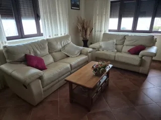 Se vende conjunto de sofás de piel en color beige. - Sofá de dos plazas. - Sofá de tres plazas.