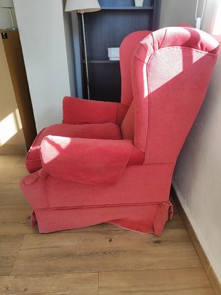 Sillón orejero de tela rojo
