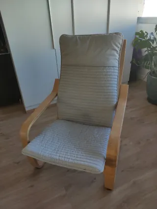 Se vende mecedora IKEA POÄNG, valorada en 89 euros (ver fotos) por cambio de habitación. Es la combinación clásica de estructura en chapa de abedul y funda cojín gris claro. Se vende montada. Vivo en un tercero sin ascensor, pero ayudo a bajarla si es necesario. Estado: Muy bien conservada, estructura perfecta, tejido limpio y acolchado firme Palabras clave: Mecedora IKEA, Sillón POÄNG, Silla IKEA, Mecedora POÄNG, Butaca IKEA, Sillón de madera, Silla de balanceo, Butaca mecedora, Sillón relax, Mecedora de madera Sillón orejero, Sillón de lectura, Mecedora salón