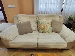 Sófa de 2 plazas color blanco y beige, cómodo y cuidado. 170 cm de Largo. 100 cm de Ancho.