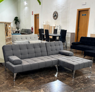 Sofá Cama Chaiselongue Gris Terciopelo