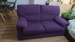 Sofá cama en color lila/morado. Cómodo como sofá y práctico como cama ocasional. En buen estado, con uso normal. Ideal para salón pequeño, estudio o habitación de invitados. 📍 Recogida en mano Calle boladiez, toledo.