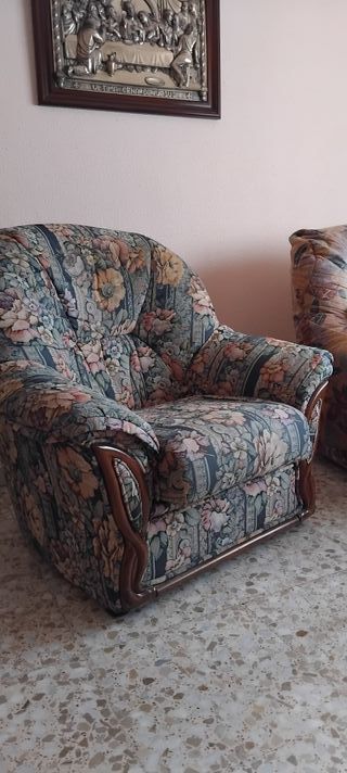 Sillones 2 idénticos floral tela y madera