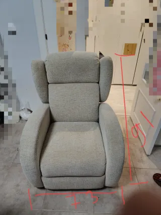 Cómodo sillón reclinable con un diseño moderno. Está muy bien cuidado, como nuevo,se ve así por culpa de las luces. - Tapizado en tela. - Tonos beige y gris.