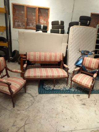 Sofás siglo xx antiguos con 2 butacas