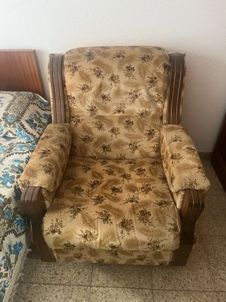 Sofá 3 plazas + butaca madera maziza. 50€ URGE!!!