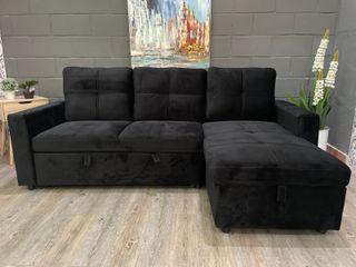!atendemos por whats 63*22*47*000 !! ✅Totalmente nuevo y con 2 años de garantia ✅Envios a toda Esapaña y Barcelona pago en persona Sofá cama chaise longue de terciopelo en color negro. Es un mueble práctico y elegante para tu salón. - Diseño moderno. - Tapicería suave al tacto. - Amplio espacio de almacenamiento.