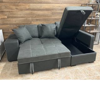 Sofá cama modular de diseño vanguardista, ideal para optimizar espacios. - Tapicería de tela. - Estructura de madera. - Compartimento de almacenaje integrado en la chaise longue. Precio anterior 699 Ahora 599 € Pago contrareembolso Envio de 2 a 7 dias habiles