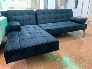 Sofá cama versátil con chaise longue, ideal para optimizar espacios. Su sistema click clack permite convertirlo fácilmente en cama. - Diseño moderno y funcional. - Tapizado suave al tacto.
