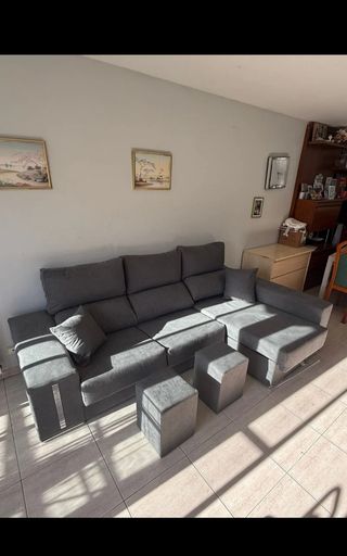 Urgente:Vendo sofá chaise longue por mudanza. Está en muy buen estado, como nuevo, muy cómodo y cuidado, sin roturas ni manchas. Ideal para salón o piso. Color gris, diseño moderno y fácil de combinar. Se vende tal cual aparece en las fotos. Sus medidas son 1,56m x 2,60m y el fondo es de 86cm. - Diseño moderno y confortable. - Tapicería de tela de alta calidad.