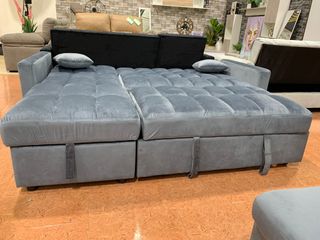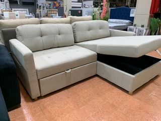 Nuevo sofá cama chaise longue con arcón , incluye 2 cojines. Sistema clic clac y de arrastre. Modelo de sofá se convierte en cama matrimonial. Se puede modificar el lado del chaise longue. Medidas: 210x145cm (sofá) - 170x190cm (cama) 📦 Envío a domicilio (consulte tarifas) 💵 Pago al momento de la entrega 🛡️ Garantía de 3 años (en artículos nuevos de fabricante)