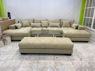 Este sofá modular en forma de L cuenta con una chaise longue y una otomana a juego, todo tapizado en tela beige. - Incluye cojines decorativos. - La otomana puede usarse como asiento adicional o reposapiés. 📲 Llama ahora: 643*189*083 💸Pagas al recibir 🚚💨 Envíos disponibles 🛠️ Montaje disponible 🏡⬆️ Te lo subimos hasta tu casa Compra segura, rápida y sin complicaciones. ¡Aprovecha antes de que se agote!