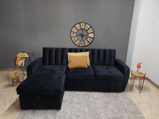 Sofá cama estilo chaise longue de 215cm. -chaise longue reversible - Tapicería de terciopelo. - Color negro o gris - Diseño moderno y funcional. -envio