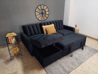 Sofá chaise longue convertible negro terciopelo
