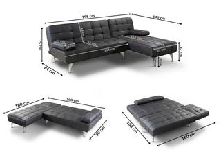 Sofá cama con chaise longue en color negro. Un mueble versátil para tu hogar. *Medidas: - ancho: 198cm - alto: 77cm - fondo chaise longue : 150 cm *Varios colores : azul , gris y negro *Producto nuevo con embalaje original de fabrica *Pago en efectivo en el momento de la entrega *Envíos de 1 a 3 días hábiles