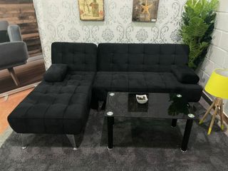 Sofá cama con chaise longue en color negro. Un mueble versátil y moderno para tu salón. - Tapicería de terciopelo. - Estructura de metal. ✅ pagas cuando lo recibes. ✅entregas inmediatas. ☎ atendemos mediante whtasapp 640*704*625