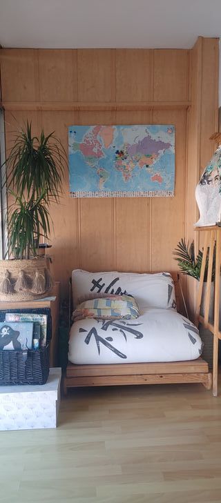 Sofá-cama madera + colchón de futón