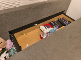 Sofá cama de ikea sin usar. Comprado a finales de 2023 y prácticamente nuevo. Siempre ha estado con funda por lo que no le ha caído ni el polvo. El mecanismo de apertura del cajon de almacenamiento esta en perfecto estado y tiene todos los cojines originales con sus correspondientes fundas. El color es gris oscuro