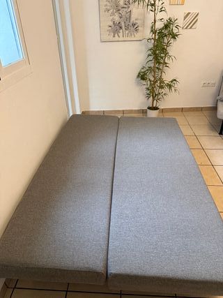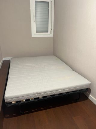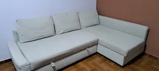 funcional y cómodo, perfecto tanto como sofá como en modo cama. Ha tenido uso normal, por lo que presenta algunas marcas estéticas propias del tiempo, que no afectan en absoluto a su uso ni comodidad. Lo mejor del sofá: • Se abre y cierra con facilidad • Cama amplia y confortable • Estructura firme y mecanismo en perfecto estado • Diseño versátil que encaja en cualquier ambiente Ideal para pisos pequeños, habitaciones de invitados o segundas residencias. Precio ajustado teniendo en cuenta su estado, una buena oportunidad si buscas funcionalidad a buen precio. Se puede ver sin compromiso.
