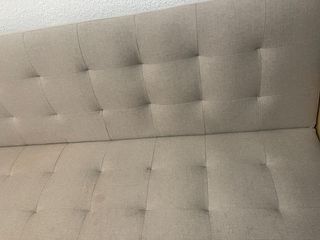 Sofá cama de tres plazas con un diseño moderno y confortable. - Tapicería de tela. - Color beige neutro. El colchón de la cama mide 130x180 Es muy cómodo. IMPORTANTE: Se recoge en Torre Manzanas, un pueblo a 43 km de Alicante.