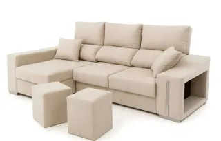 Sofá Cama Chaise Longue con Arcón Beige