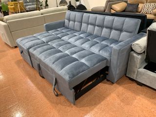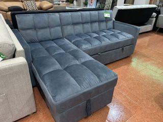 Sofá cama con chaise longue y espacio de almacenamiento. - Medidas totales de 210 cm. - Diseño moderno y funcional. - Tapizado en tela terciopelo, - se convierte en cama totalmente - incluye 2 cojines