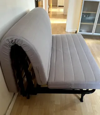 Sofá cama de Ikea en color gris, ideal para cualquier espacio. - Diseño moderno y funcional. - Tapizado en tela. - Patas de madera.