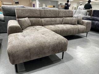 Sofá de alta gama con chaise longue. - Chaise longue de 1 metro. - Tapicería de tela anti manchas, fácil de limpiar. - Reposacabezas reclinable. - Sofá dispone de dos cojines a juego.