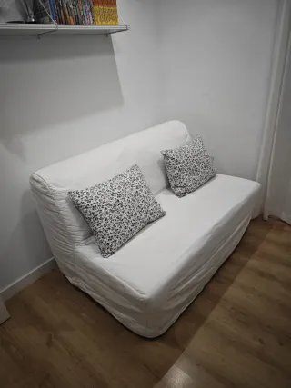 Sofá cama individual de IKEA, modelo LYCKSELE. Ideal para espacios reducidos o como cama extra. Muy buen estado * Estructura metálica resistente. * Funda de tela en color blanco. * Diseño moderno y funcional.
