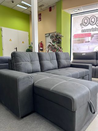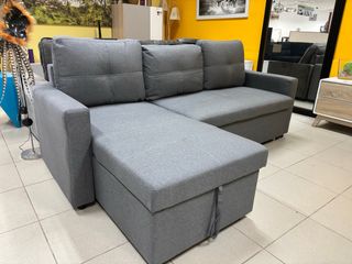 Sofá cama chaise longue de tela, color gris, con arcón. Está producto nuevo. - Diseño moderno y elegante. - Incluye arcón para almacenamiento. - Perfecto para espacios pequeños. Más info, fotos: 664805502
