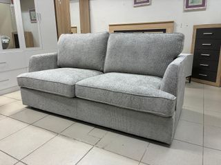 Sofá cama de dos plazas en color gris. Su diseño moderno se adapta a cualquier espacio. la cama se de 1.35 posibilidad de trasporte - Tapicería de tela. - Estructura robusta.