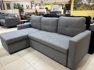 Sofa cama chaise longue de tela, en color gris. y es muy cómodo. Es reversible Medidas 215 × 135 × 90 de alto Cama 120 × 190 Disponible en gris claro y gris oscuro - Incluye arcón para almacenaje. - Diseño moderno y elegante. - Perfecto para espacios pequeños. Puedes recibirlo en casa contra reembolso por 25 €?
