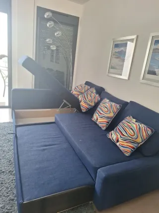 Sofá cama con un año de uso. - Diseño moderno. - Amplio espacio de almacenamiento. - Cojines cómodos.