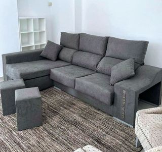 Sofá chaise longue en forma de L, ideal para aprovechar el espacio. Se puede extender para mayor comodidad o hacer sofa cama. Se vende por mudanza. Hace 2 años que se compro nuevo. 273x88x100 273x177x100 montado en L - Tapicería de tela. - Color gris. - Diseño moderno.