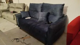 A ESTRENAR Sofá cama de terciopelo azul cobalto valorado en 350€ - Dos plazas - Cuatro posiciones - Patas plegables y embellecidas - Se incluyen 2 almohadones a juego. MOTIVO: Pedimos otro articulo, nos llegó este por defecto y no fue necesaria la devolución. -Precio negociable, se puede visitar. - Entrega en mano con el mueble ya montado.