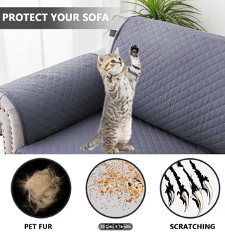 Protege tu sofá con esta funda impermeable, ideal para hogares con mascotas. - Diseño acolchado. - Cubre asientos y brazos. - Bolsillos laterales para control remoto o revistas.