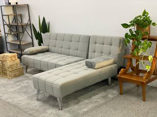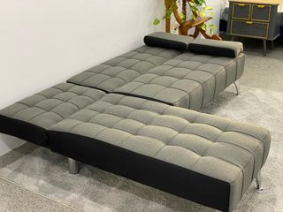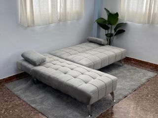 Sofá cama Asarum de tela en color gris. Es un mueble versátil que se adapta a diferentes espacios. Poco uso, solo en habitación de invitados. - Diseño moderno. - Dos cojines incluidos.