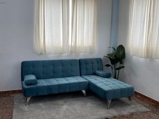 Sofá Cama Cali Terciopelo Gris o Azul – Ideal para Espacios Pequeños