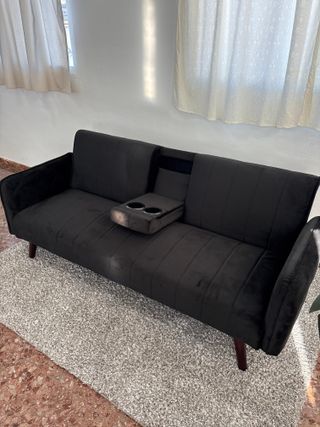 Nuevo sofa cama clic clac sin chaislongue con reposa vasos de terciopelo negro Hacemos envios rapidos a domicilio Pago contra reembolso