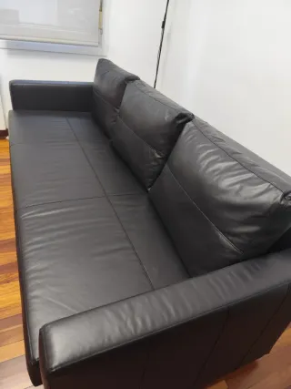 Sofá cama negro fácil limpieza con trapo húmedo de diseño moderno y elegante, perfecto para cualquier hogar.con hueco para meter almohada, sábanas , manta. Venta en persona en Bilbao desmontar y transportar a cargo del comprador.
