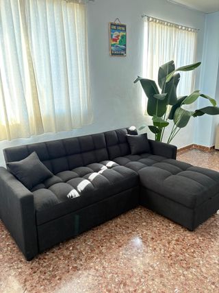 Sofá cama chaise longue + arcón antimanchas nuevo