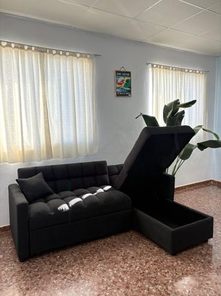 Oferta Sofá Cama Chaise Longue con Arcón Negro