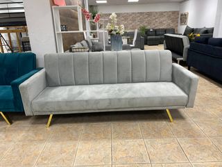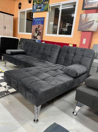 Nuevo sofa cama clic clac de terciopelo gris con arcon y chaislongue Hacemos envios a domicilio Pago contra reembolso