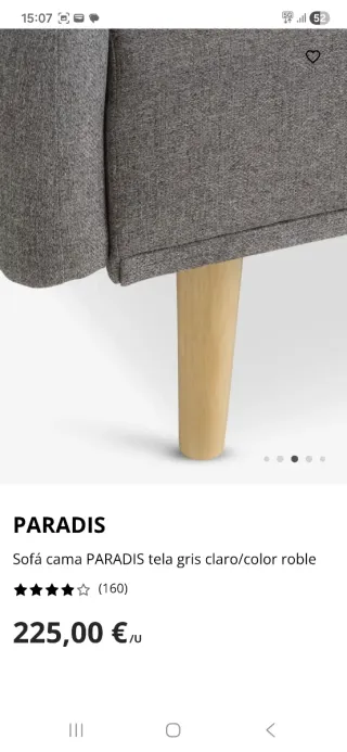 Sofá cama de la marca PARADIS en color gris claro. - A estrenar. - Diseño moderno con patas de madera. - Tapicería de tela. - Estilo contemporáneo. Recogida en mano.