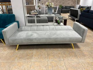 Sofá cama de estilo moderno en color beige, ideal para cualquier espacio. - Tapicería de terciopelo suave al tacto. - Mecanismo click clack para fácil conversión. - Patas metálicas doradas. Linea directa 📲 24/7 sin compromiso! 📲 643*189*083 MUEBLES NUEVOS DE TODO TIPO PARA EL HOGAR 🏡 🚚💨 NUEVOS EN SU CAJA DE FABRICA 🏡⬆️ Se suben hasta el domicilio 💸El pago es en persona al recibir