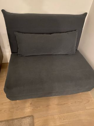 Sofa cama que funciona perfectamente. Tiene algún deshilado del uso. Se vende con dos fundas blancas a medida nuevas. Se vende pero como condición hay que venir a por el en Bilbao.