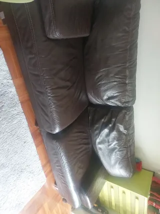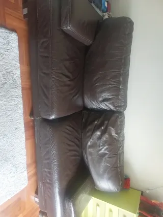 Amplio sofá piel 100%. La piel esta en excelente estado, recien tratada con producto hidratante específico. Se puede hacer cama. Una de las cremalleras de sujeción del respaldo rota, no afecta a su uso ni aspecto. No envíos