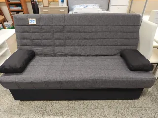 Sofá cama de tela con un diseño moderno y elegante. - Tapicería en tonos grises y base negra. - Dos cojines decorativos incluidos. Medidas En Sofá: 76x190 En cama: 127x190 Tenemos una variedad de muebles, colchones nuevos y de segunda mano, adornos y mucho más. Estamos en la Calle Joaquín Rubio i Ors, 195, Cornellá de Llobregat. ¡Ven a visitarnos! Teléfono: 93 475 32 80