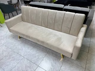 Este sofá cama es una adición elegante y funcional a cualquier hogar. Su diseño moderno combina comodidad y estilo. - Tapicería de terciopelo suave. - Patas metálicas doradas. - Estructura robusta.